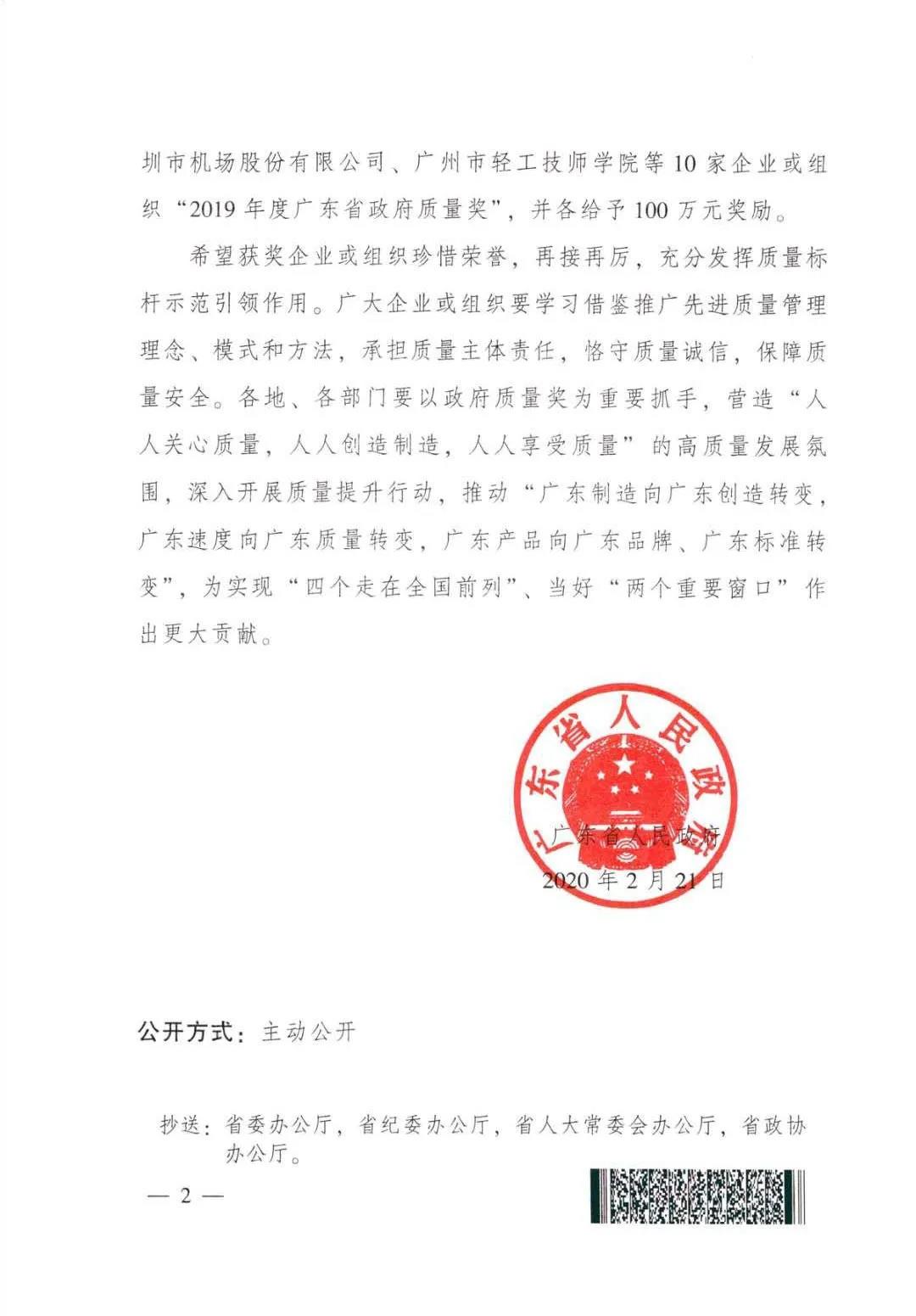 關(guān)于廣東省政府質(zhì)量獎(jiǎng)