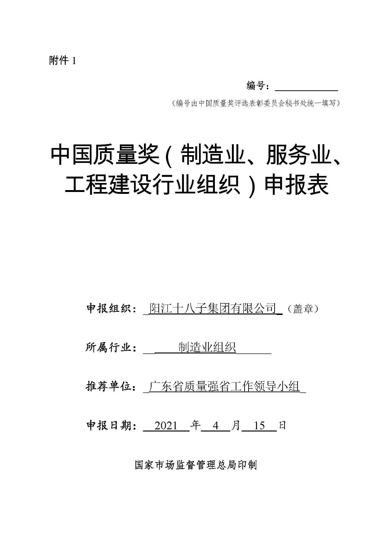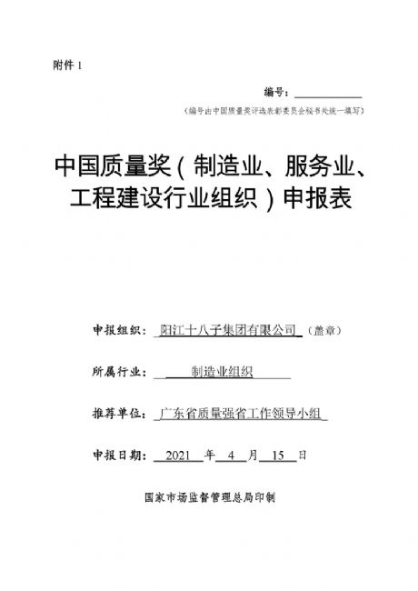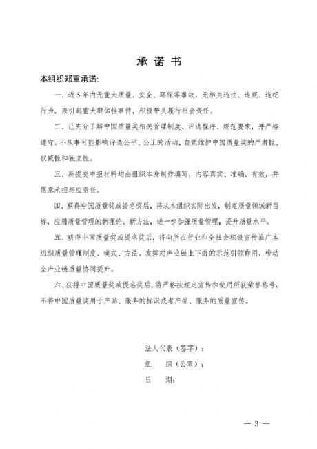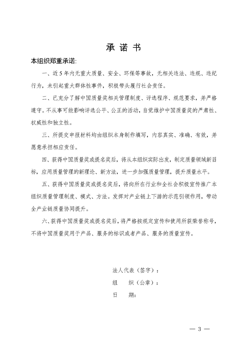 關(guān)于中國質(zhì)量獎(jiǎng)申報(bào)表公示